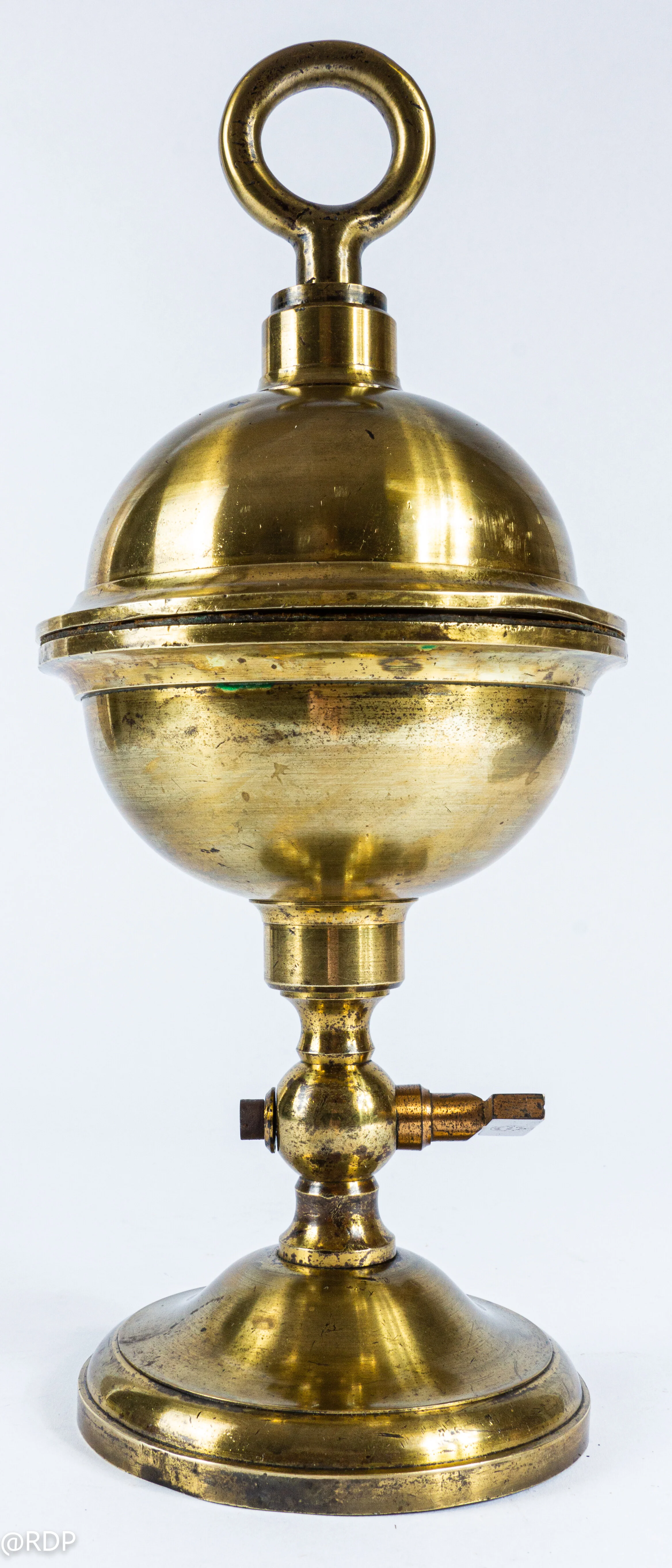 Magdeburg Hemispheres were used for demonstration purposes to show the effect/strenght of atmospheric pressure. For that purpose, the rims and sealing ring were greased, the hemispheres put together and, via the valve, connected with a vacuum pump to extract the air. The atmospheric pressure was enough to keep the hemispheres together and could not be separated.