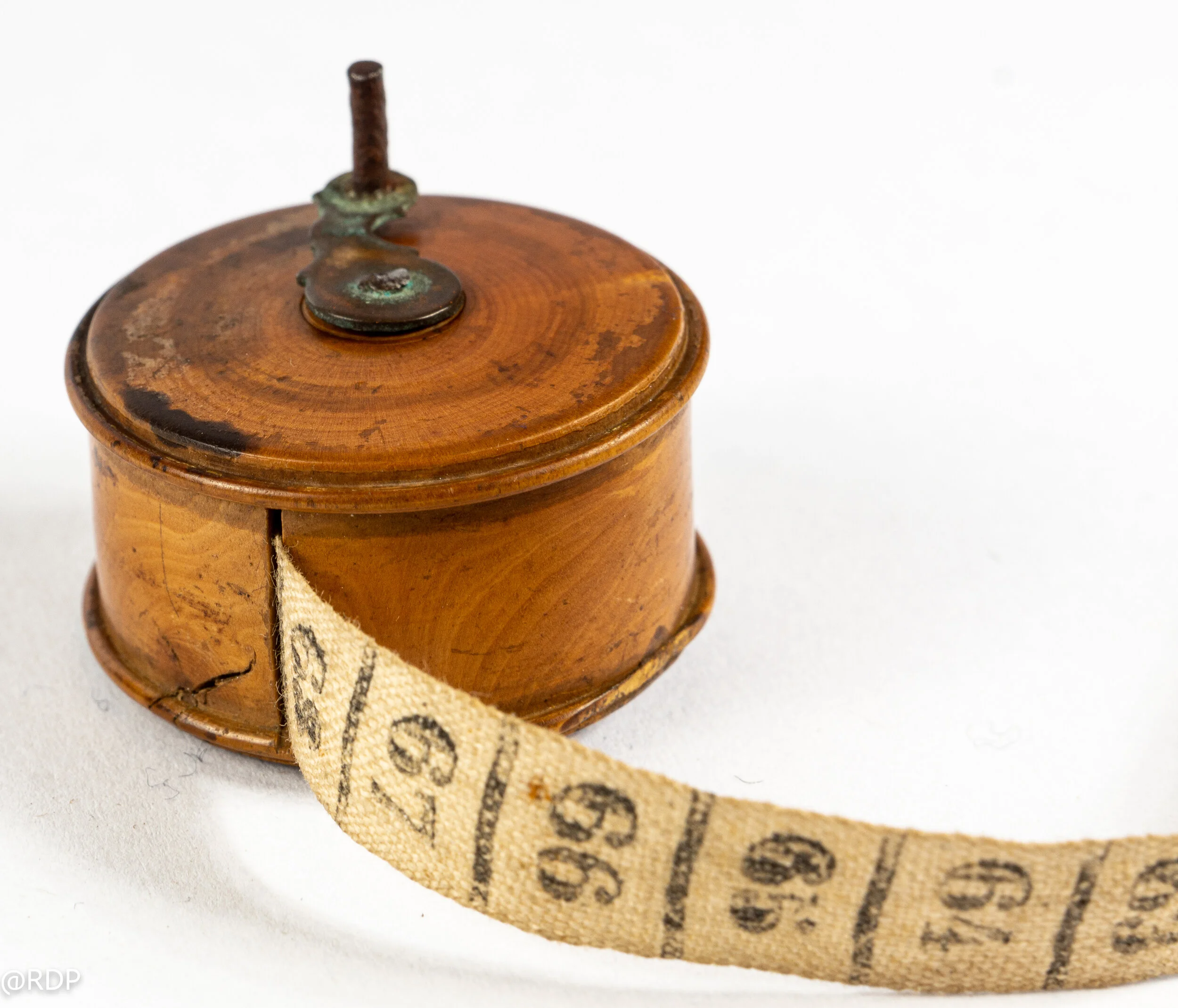 Cute small tape measure in boxwood with linnen tape. Scale goes from 54 to 143 centimeters.